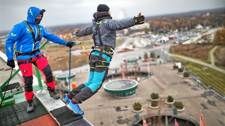 Stehe am Fuß des Stadions in Wrocław (Breslau) und schaue nach oben. Wenn Du einen Springer in Deine Richtung fliegen siehst, dann bedeutet das, dass Du die extremste Attraktion von Breslau gefunden hast!