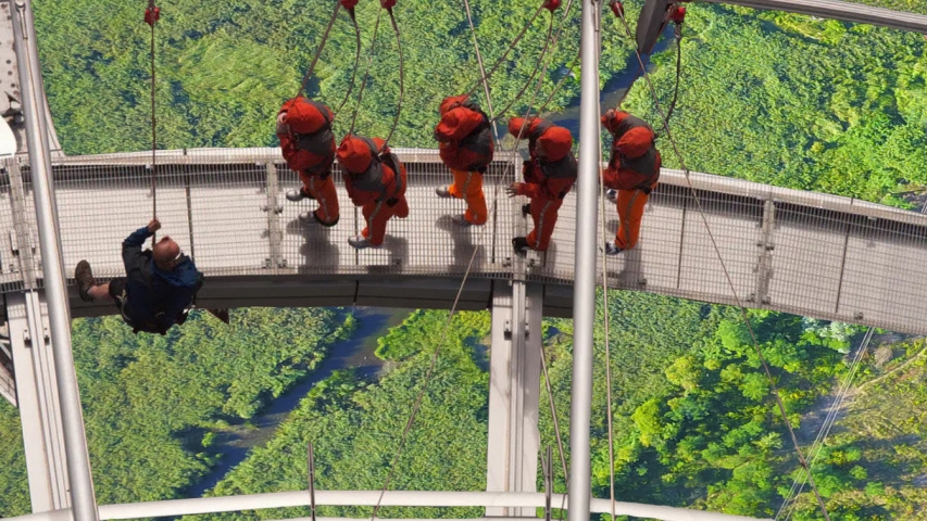 Specjalnie zaprojektowany system zabezpieczeń sprawi, że z lekkością linoskoczka przespacerujesz się dookoła wieży pomiędzy chmurami i poczujesz ogromną satysfakcję i niezapomniane emocje!