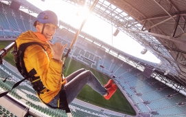 Już nie tylko samymi skokami żyje człowiek na Stadionie :) Od 1 maja 2019 roku mamy nową atrakcję - tym razem obywa się ona wewnątrz Stadionu - bezpośrednio nad trybunami i murawą! Dream Jump Zip-Line lub popularnie zwana Tyrolka to nowa opcja ekstremalnej rozrywki. Kolej tyrolską wymyślono dawno temu do pokonywania trudnych tras między dwoma punktami - dzisiaj umożliwia świetną zabawę i zjazdy z dużą prędkością i bardzo łagodnym hamowaniem. Dzięki nowej atrakcji możemy otworzyć się na osoby poniżej 18 roku życia, które chciałyby zacząć wchodzić w świat sportów ekstremalnych, ubrać uprząż, kask i śmignąć prosto nad boiskiem piłkarskim na drugą stronę trybun - czując wiatr we włosach i zapach świeżej trawki w nozdrzach :) Przekonaj się na własnej skórze, ile radości potrafi dać taki zjazd. To doskonała atrakcja dla całej rodziny a jeśli będzie Ci mało - zapraszamy na skoki z krawędzi korony Stadionu - z 40 metrów!